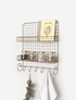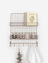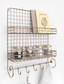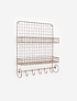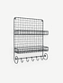 Con dos niveles de almacenamiento y 5 ganchos para colgar, nuestra repisa Lucía es una excelente opción como especiero en la cocina u organizador en el escritorio.